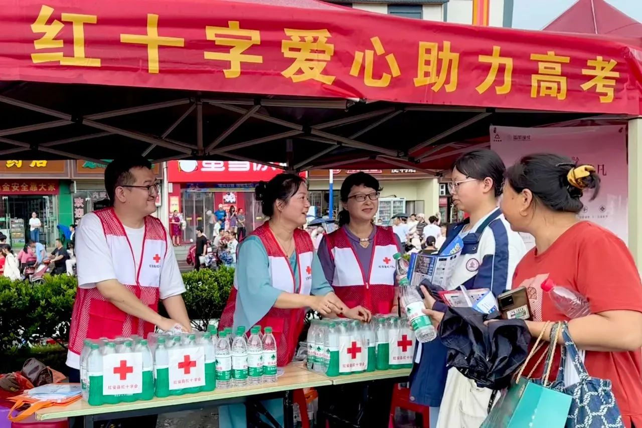 6月7日,县红十字会在红安县第一中学、第三中学、实验高级中学三个考点分别设立爱心助考清凉“益”站,免费为考生提供矿泉水、金银花露等物资,义务为考生及家长提供应急救护、爱心志愿服务,助力我县广大考生圆满、顺利完成考试,营造文明和谐的考试氛围。