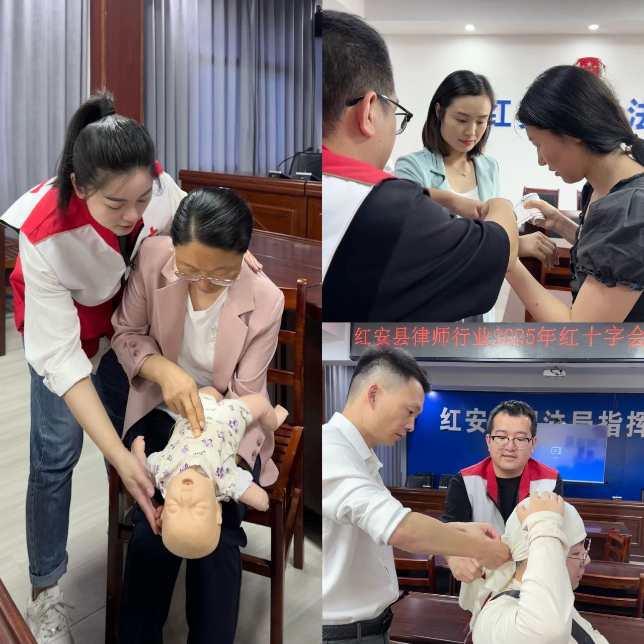 为普及应急救护知识,提高法律从业人员应急救护能力,近日,县红十字会联合县司法局面向全县五家律师事务所的执业律师、实习律师以及行政内勤人员开展应急救护培训活动。