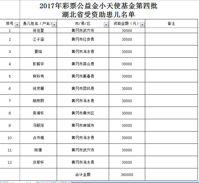 黄冈市2017年小天使基金第四批受助名单